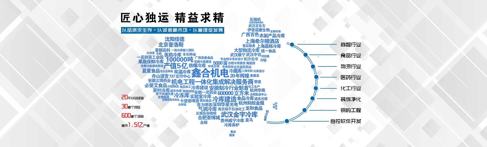 安徽鑫合機電設備有限公司于2002年組建運營,專業從事冷凍、冷藏庫、中央空調、醫藥凈化工程的規(guī)劃設計、施工承建、售后服務為一體的綜合性工程公司,與100多家實力雄厚的大中型企業建立長期產略合作關系,其中有多家世界500強和上市企業。公司作為中國倉儲與配送協會會員單位、安徽省制冷學會理事單位、上海楊浦區制冷協會工程總承包負責單位,引領于行業前沿。我們將銘記給予我們大力支持的各界新老朋友及合作伙伴,我們將會保持“互惠互利、共同發(fā)展”的原則與您共創雙嬴的合作關系。